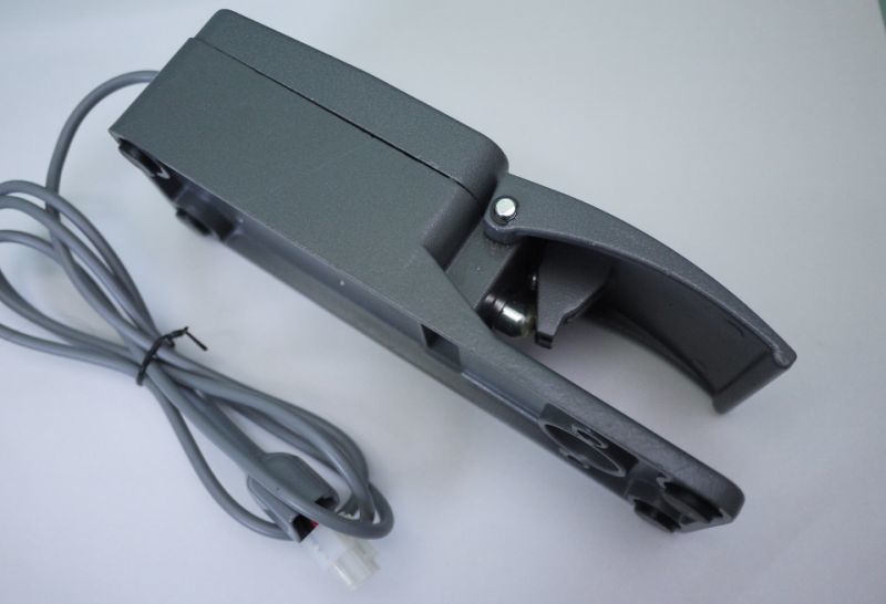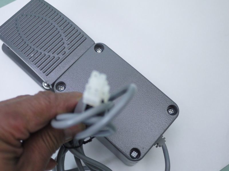 1000Wサーボモーターのフットペダルはテーブル下に固定して取り付ける様な設定なっていますが、テーブル上に取り付けた際は、既存のフットペダルは使えません。こちらに変更することにより、卓上式に取り付けても、どこでもペダルが使えるようになりますので対応できます。