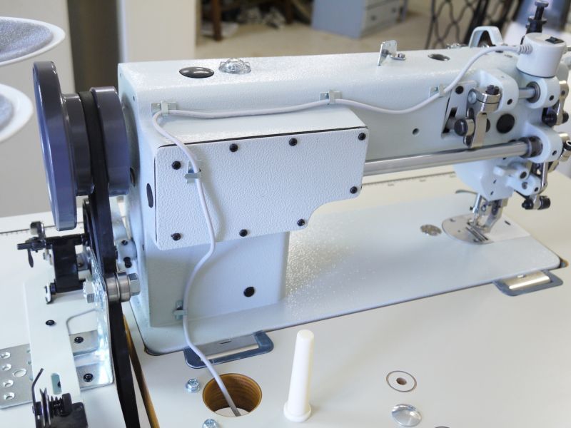 大変高品質な革/帆布/厚物/ラミネート素材対応のミシンです。3倍アイドルプーリー付きで極厚地などが楽に縫製できます。レザー、厚物帆布、厚地テント生地などの縫製にお勧めです。