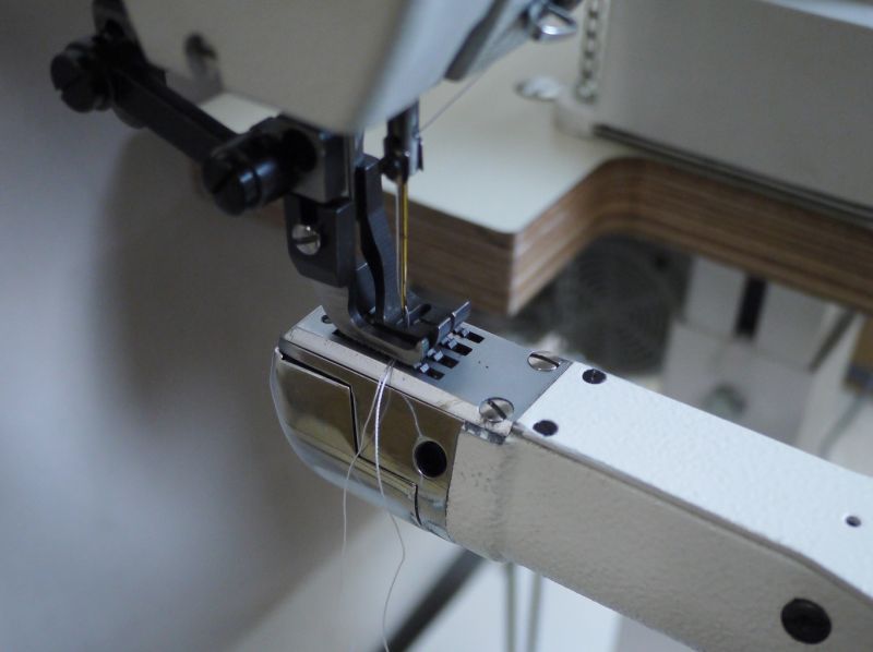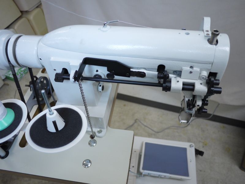 帆布バッグやデニム 筒状の物など大変強度のある縫製ができます。細腕の直径は45mmです 細い筒縫いも縦に縫うことができます。返し縫は手元とフットでもできるようになっています。