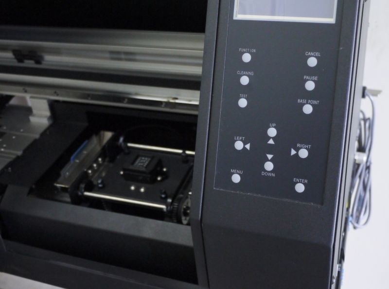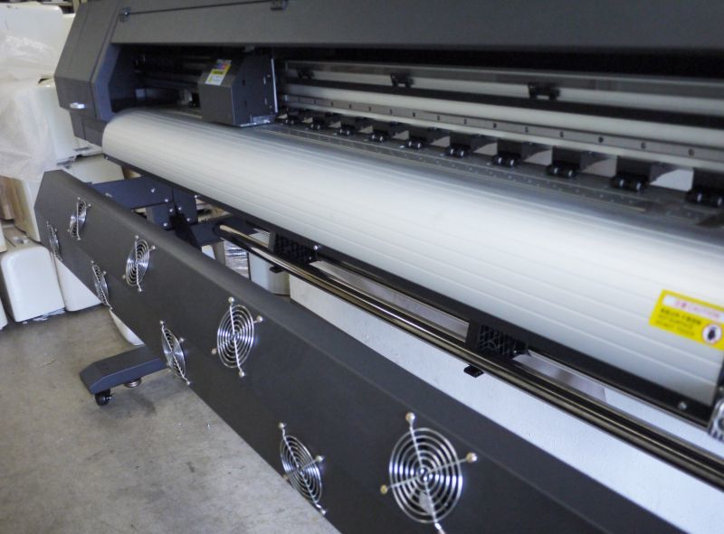 ビニールやロール紙素材に直接プリントする機械です
